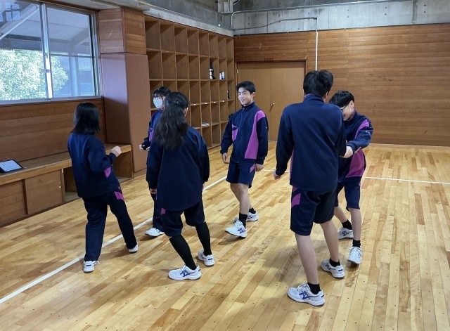1年生の体育では、男女合同で「創作ダンス」の授業が盛り上がっています。