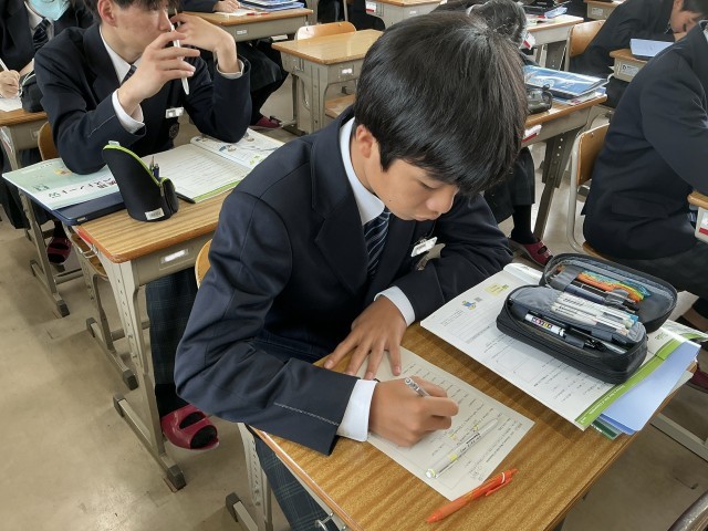 英語を苦手としている生徒も、ペアワークで好きなことの話を積極的に表現していますね。