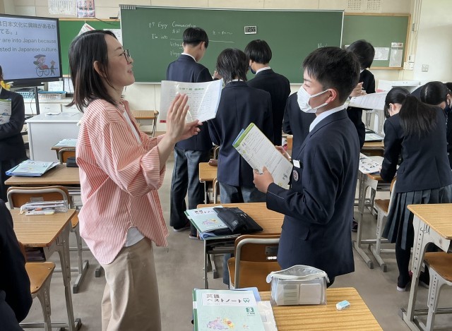 新しい教科担任の先生もどれくらい表現活動ができるか楽しそうに生徒たちとコミュニケーションをとっています。