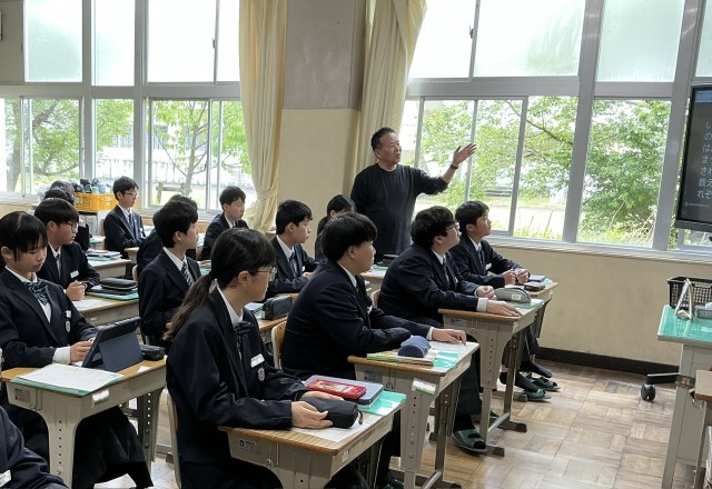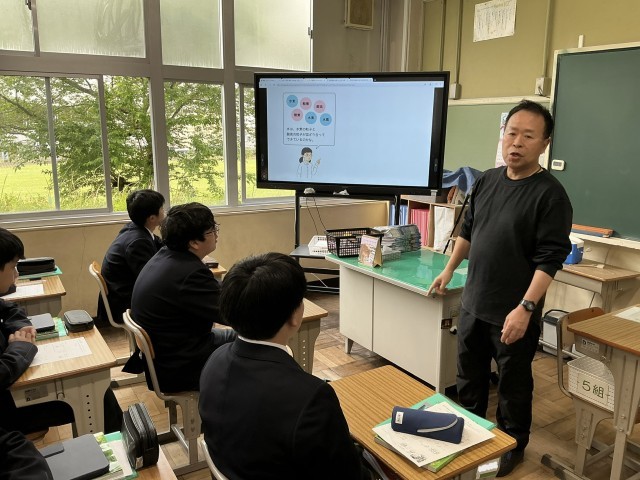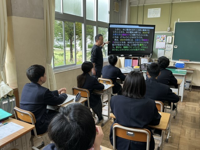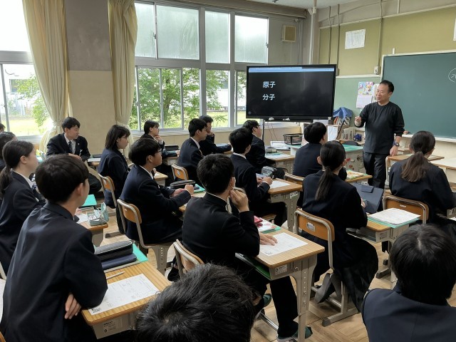 見えない粒がつながる不思議 公開日 2026/04/24 更新日 2026/04/24 日々の様子 2年生は教室で理科の授業をしていました。「水」が水素と酸素という「原子」からできていることを目に見えない粒子のモデルを使って理解する非常に重要な授業です。水は「水素と酸素からできている」という知識を、今日は「粒子のモデル」を使って視覚的に整理します。粒子が一つの「原子」なのか、それとも集まった「分子」なのか。2年生はこの重要な違いを学んでいきます。 +3