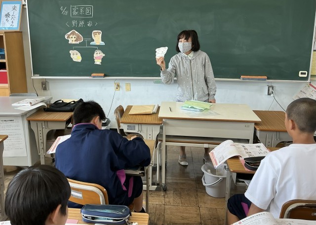 今日は自分を中心とした「家系図」を作成し、家族や親族の範囲について学習しました。