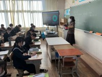 2年生は英語の授業で年末年始の過ごし方について話し合っていました。ALTのレイン...