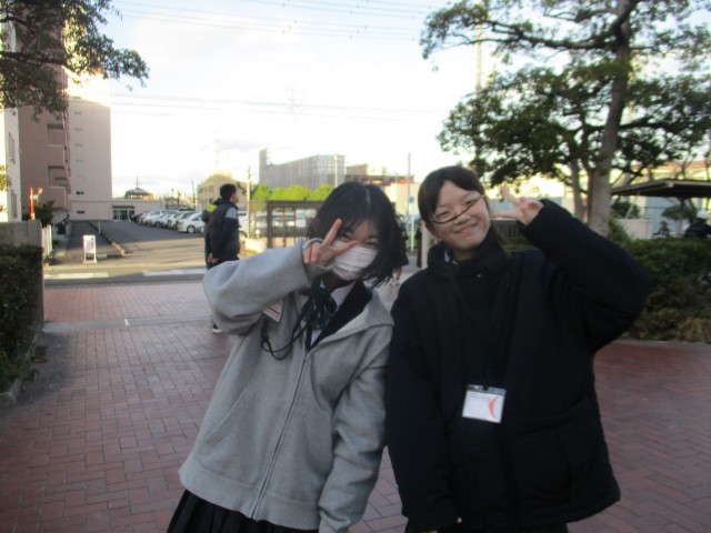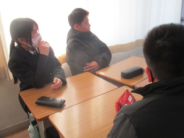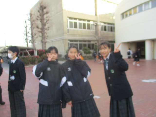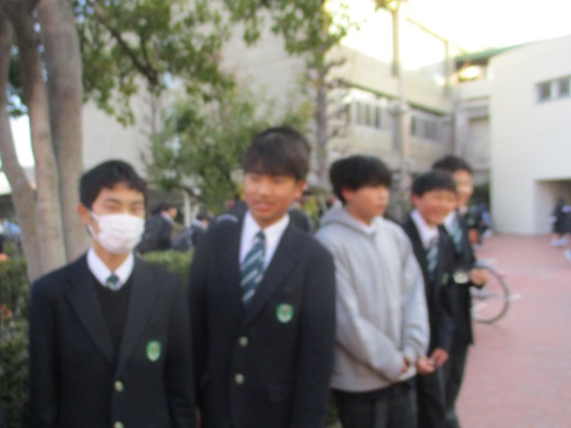 3年生は、今日から私立高校の一般入試が始まりました。この3日間はとても寒いという予報ですが、今日も先生たちが激励しています。雪が降る地域があると電車が遅れる可能性があります。少し早めに出ましょう。学校では1年生の学級委員会が元気よくあいさつ運動をしていました。