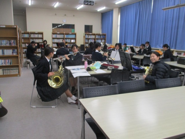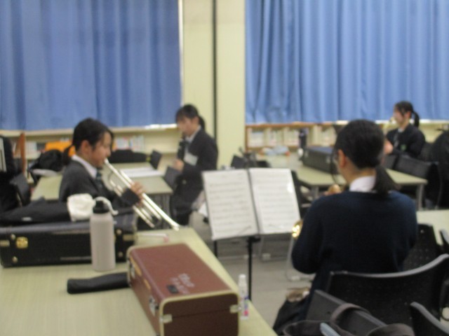 今日は45分授業なので、少し部活動の時間が長かったです。今日は文化部の紹介をします。吹奏楽部とコンピュータ部です。両方とも黙々と練習していました。コンピュータ部は初めはゲームをしていると思っていたのですが、実はタイピングの練習でした。とても速かったです。