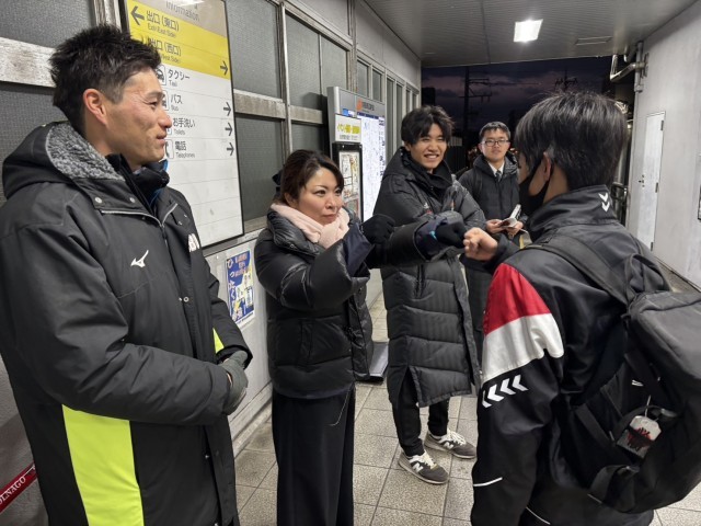 今日は、私立推薦入試の日です。個人的には、もう入試を終えている子もいますが、今日初めて入試に出かける子たちがいます。真っ暗な共和駅のホームで、先生たちが激励に駆けつけました。朝早い時間から電車に乗っていったようです。「推薦」として受けに行く子たちなので、自信をもって力を発揮してほしいと思います。