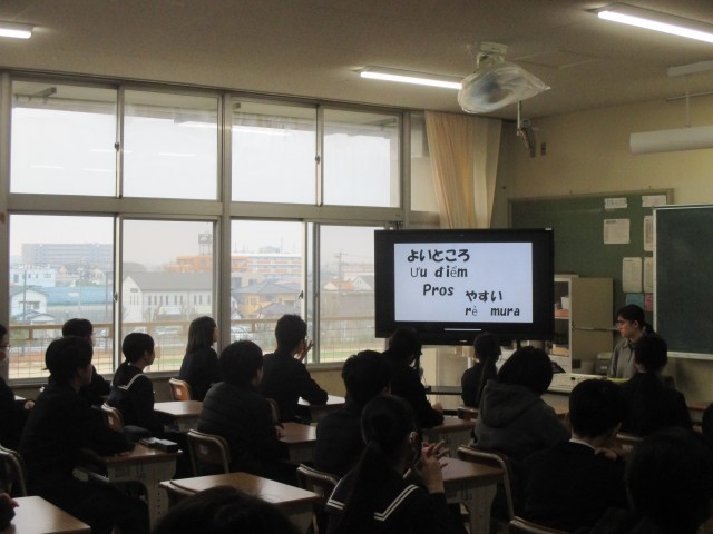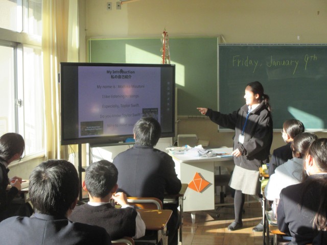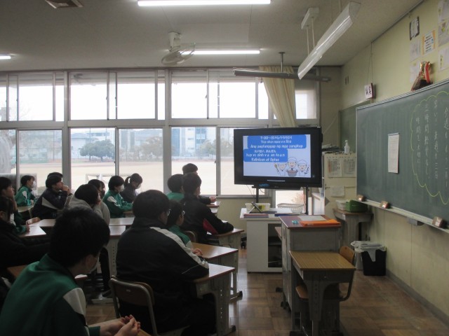 3学期から英語指導にあたっていただいています。海外での生活経験を生かした丁寧な指導により、生徒たちは意欲的に授業に取り組んでいます。