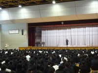 共長夏まつりの準備として、「ちょうちん付け」ボランティアに約20名の生徒が参加してくれました。地域の方々と一緒に、ちょうちんや万国旗の飾り付けを協力して行い、みんなの力で短時間で作業を終えることができました。