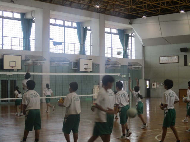 1年生の体育の授業では、バレーボールをしていました。自分でトスを上げてアタックをしていました。
