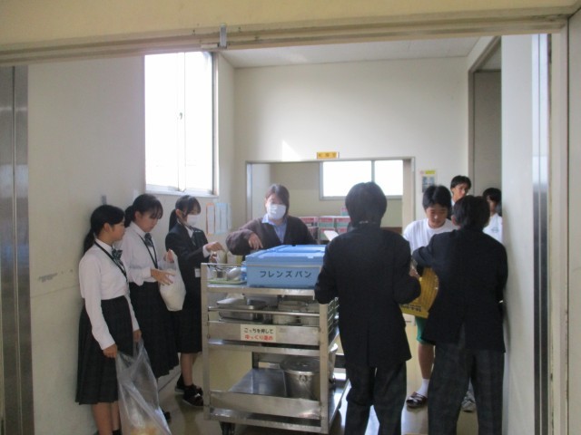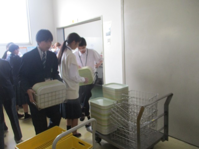 今日は、給食の後片づけをしているところです。配膳室では、各学年給食委員や給食係の子たちが活躍していました。どこの学校でも同じですが、給食を食べ終わった後は、ごみや残飯を集めたり調理場に戻しやすいようにトレイや牛乳のカゴを1か所にまとめたりしていました。みなさんのその作業が、調理場での食器洗いやごみの始末につながるのだと思います。本当に知らないところで頑張ってくれる人たちに感謝です。