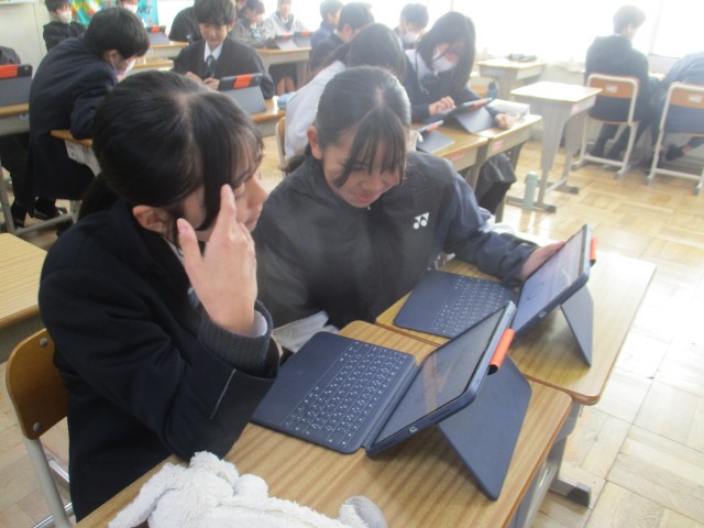 1年生の総合の授業です。12日(金)にある発表会の準備をしていました。「愛知の魅力を発表しよう」という活動に取り組んでいます。それぞれ興味を持って調べたり現地で学習したりしてきたことを発表します。上手にできなくてもよいので、自分の言葉で話してほしいと思います。