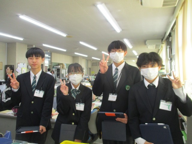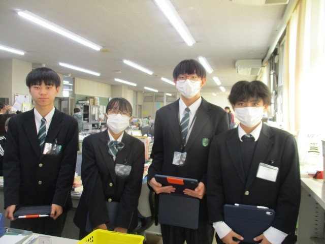 今日は、後期生徒会役員の子たちが、生徒会行事の企画・運営のために職員室に来てくれました。こういう機会はとても嬉しいので、また計画があったらぜひ来てほしいと思います。生徒会役員の子たちの力に期待しています。