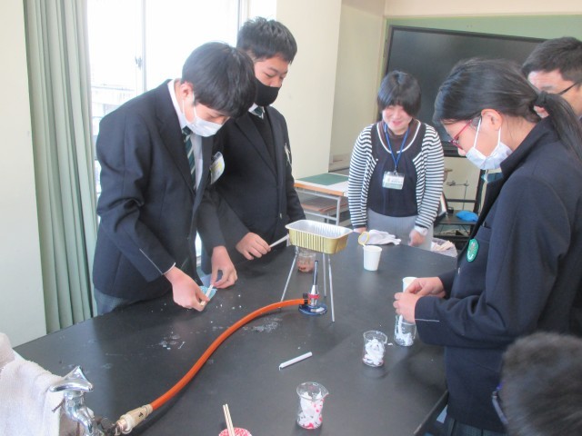 理科の授業で、ろうそくを溶かしてキャンドル作りを行いました。バーナーの正しい使い方を学び、安全に火を扱うことを意識しながら作業を進めました。溶かしたろうを型に流し込み、冷やし固めると、かわいらしいキャンドルが完成しました。