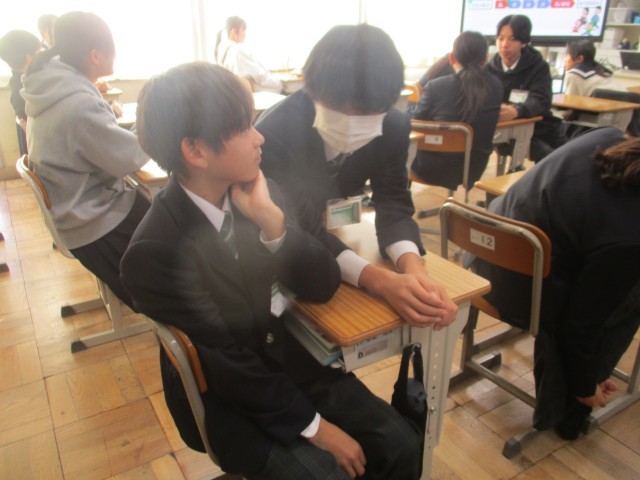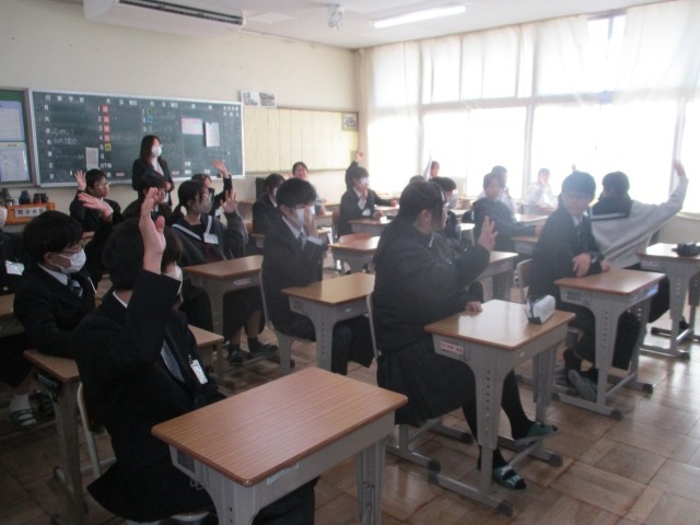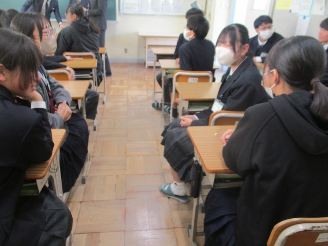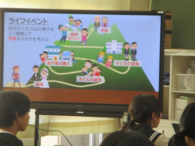 2年生は、出前授業として「ライフプランニング授業」を受けていました。今後どのような人生設計をするとよいかという話をしていただきました。一つの家族を例に人生をシミュレーションしていったようです。子どもを幼稚園から大学まですべて私立に行かせると約3,000万ほどかかるそうです。逆にすべて公立だと1,000万ほどだそうです。子どもたちにどちらを選ぶか聞いていましたが、結構手堅くて、「全部私立」と答えた子は一人もいませんでした。ご家庭でも話してほしいと思いました。