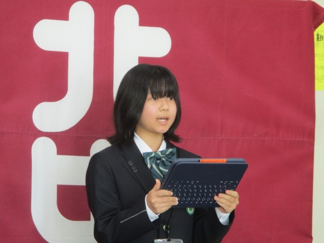 今日は、2学期の終業式でした。式の後、1年生、3年生の生徒代表の話がありました。2人とも合唱祭で、学級がどのようにまとまり、結果に結びつけたかをわかりやすく話してくれました。その後は表彰です。部活動と大府市のポスターの優秀作品の表彰がありました。運動に文化にがんばっている生徒を知ることはうれしいものです。