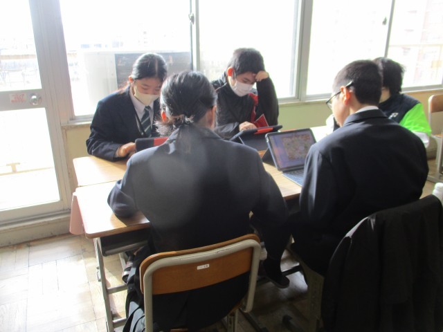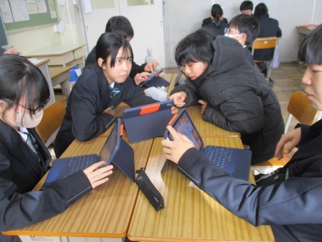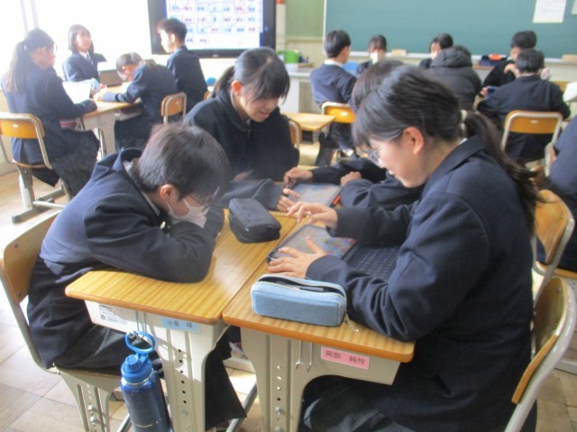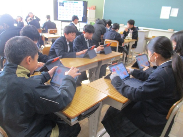 今日は、3学期初めの学活があります。1年生の学級では、タブレットで双六をしていました。「双六」というと、サイコロを振って、駒を動かして…というイメージですが、子どもたちはみんなタブレットを操っていました。デジタルだと準備があまりいらないな…と感じました。こうやってゲームをしながら、班の子たちと交流したりルールやマナーを身につけたりしていくのだと思います。