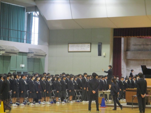 3年生が、卒業式の練習をしていました。早いもので、卒業式本番まであと1週間になりました。この後生徒にとってはメインの歌練習でした。指揮者が気づいたことを話していました。3年生の卒業の思いのこもった歌は、最高です。今日の練習も思わず拍手したくなるような歌でした。本番はもっといろいろな思いが詰まってくると思います。