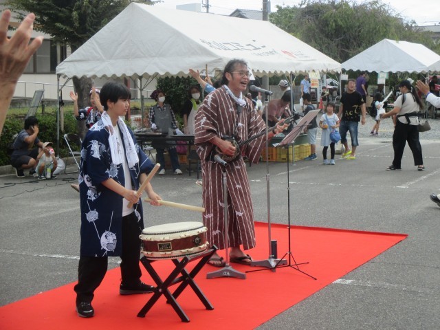 本校生徒もボランティアとして参加し、ゲームの補助や盆踊り演奏などで地域を盛り上げました。和太鼓演奏については、13日は中止となりましたが、14日には力強い演奏を期待しています。