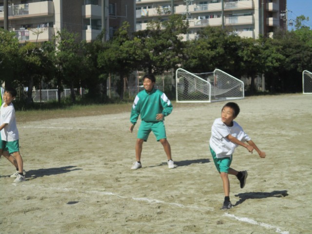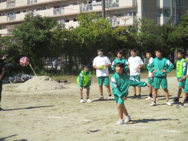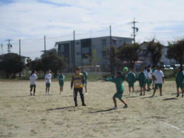 今日は、1年生の体育の授業でハンドボールの出前授業をしてもらいました。大府市の中学校にはハンドボール部はありませんが、体育の授業でハンドボールを実施している北中に、全日本でも活躍する選手が来てくれました。シュートの練習やミニゲームをして、子どもたちは楽しんでいました。最後は全日本のキーパー相手にシュートを決める挑戦をしていましたが、さすがに決められなかったようです。楽しい1日になってよかったです。