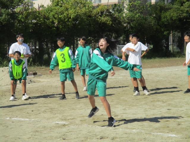 応援団のパフォーマンスから始まり、順調に学年競技、縦割り競技と進んでいきました。生徒のみなさんも指令台の上から指示をしたりスターターをしたり放送、器具の係などそれぞれ役割があります。大繩の時は、旗を振って応援している子たちもいました。