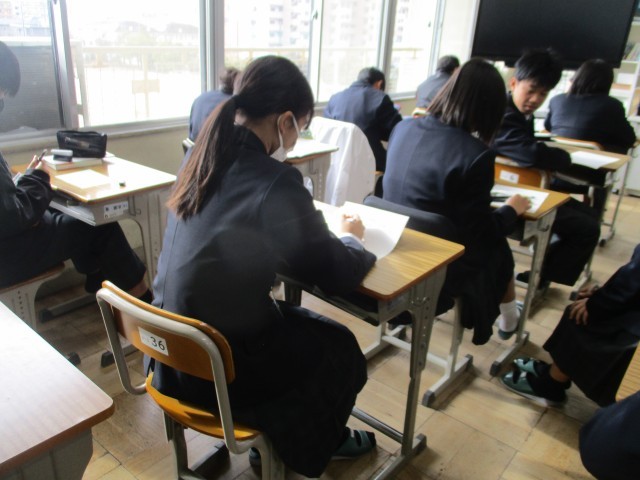 2年生は、担任の先生が教育相談をしていました。中学校では、担任の先生がいつも教室にいるとは限らずなかなか話す機会がないかもしれません。しかし、生徒のみなさんも小学生の時より成長しているので、少しでも先生に自分の気持ちを伝えられるといいなと思っています。話すのが苦手な人は、書いてもいいと思います。うまく言えなくてもいいので、なんとか伝えてみてください。