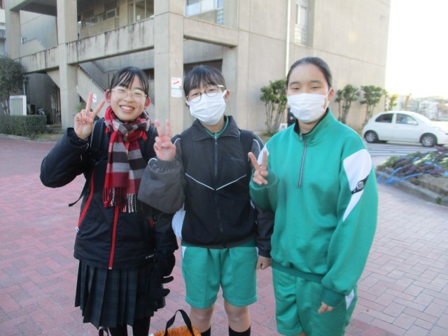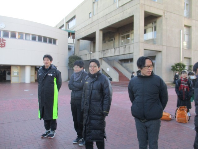 3年生は、今日から私立高校の一般入試が始まりました。この3日間はとても寒いという予報ですが、今日も先生たちが激励しています。雪が降る地域があると電車が遅れる可能性があります。少し早めに出ましょう。学校では1年生の学級委員会が元気よくあいさつ運動をしていました。