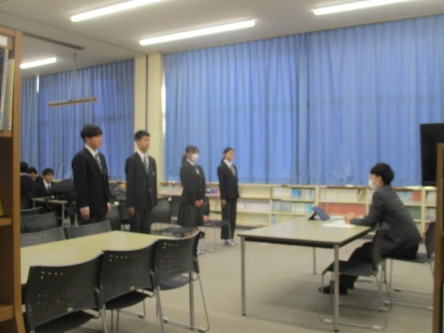 3年生が面接試験の練習をしていました。放課中はリラックスしていましたが、練習が始まると緊張して臨んでいました。公立推薦入試は面接試験しかないので、かなり抽象的なことも聞かれます。以前、ある生徒が「自立について、あなたの考えを聞かせてください」と聞かれたそうです。答えられますか?私はいつも「自立」の話をみなさんにしますが、とっさには答えられるかな?と不安になってしまいます。