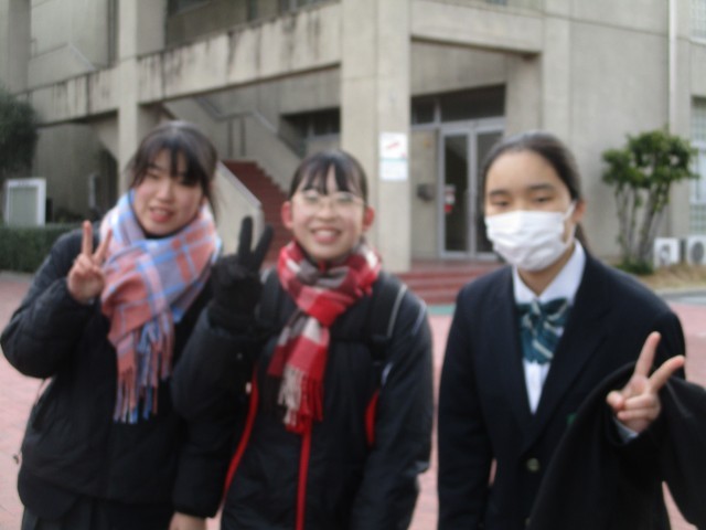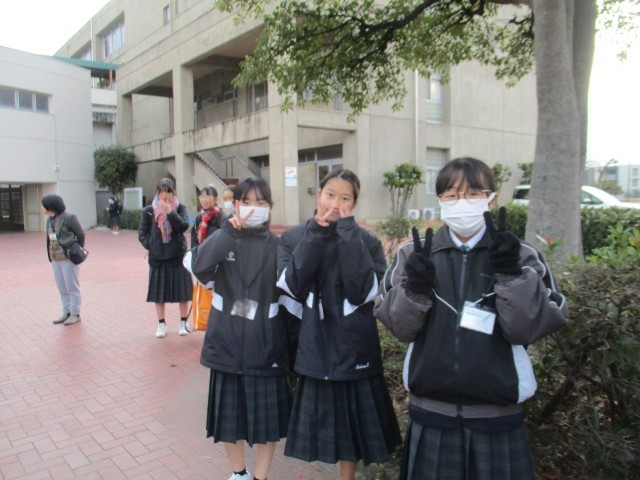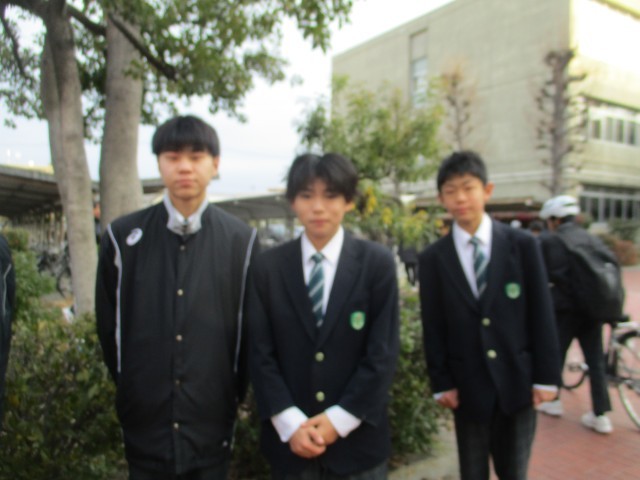 3年生は、今日から私立高校の一般入試が始まりました。この3日間はとても寒いという予報ですが、今日も先生たちが激励しています。雪が降る地域があると電車が遅れる可能性があります。少し早めに出ましょう。学校では1年生の学級委員会が元気よくあいさつ運動をしていました。