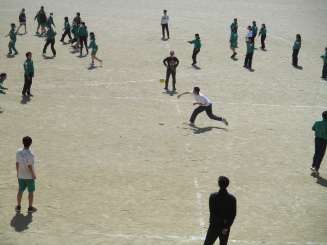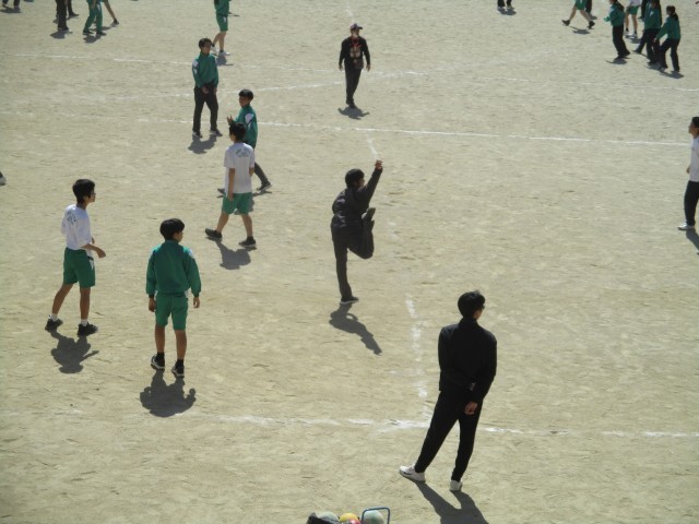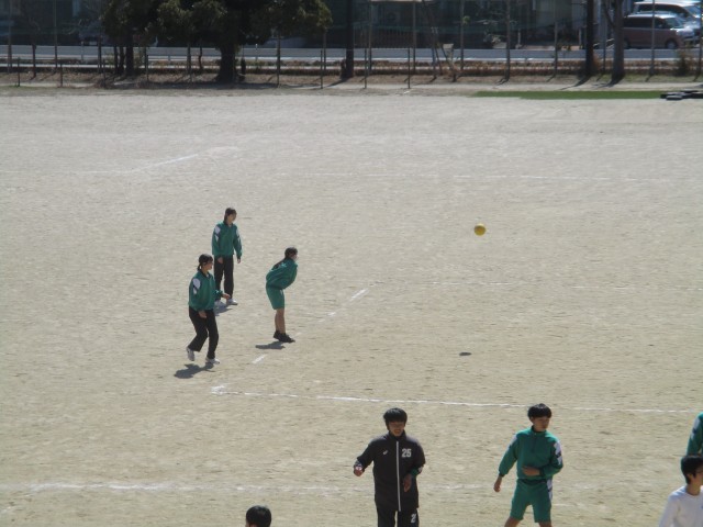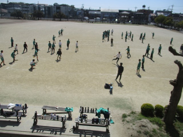 2年生の体育の授業です。男女に分かれて、ドッジボールをしていました。少し暖かくなってきたので、気持ちよくできたことと思います。また、「あまり投げてない人にボールを渡そうよ」などという声も聞こえてきて、さらに気持ちよくなりました。苦手な人も得意な人も楽しめるドッジボールにしようとしていることが伝わってきました。