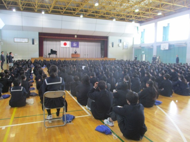 3年生が、卒業式の練習をしていました。早いもので、卒業式本番まであと1週間になりました。この後生徒にとってはメインの歌練習でした。指揮者が気づいたことを話していました。3年生の卒業の思いのこもった歌は、最高です。今日の練習も思わず拍手したくなるような歌でした。本番はもっといろいろな思いが詰まってくると思います。