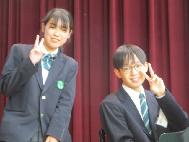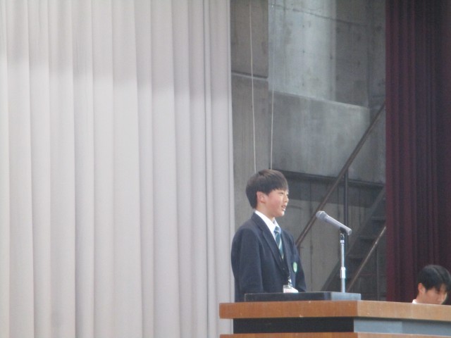 この後がとても感動的でした。2年生の生徒からの「祝福の言葉」は涙ながらのメッセージとなりました。そして、3年生からのお返しが合唱でした。いつのまに練習したのか、「正解」を体育館に響かせてくれました。しかも、肩を抱き合いながら歌っている姿があり、とても心に残りました。最後に3年生の生徒からも1,2年生に温かいメッセージがあり、とても素敵な会でした。