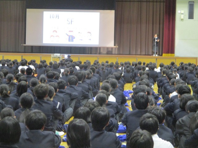 今日は、2年生の進路説明会でした。5人の高校の先生に来ていただき、高校についての紹介をしてもらいました。進路の流れみたいなことは、中学校から説明ができますが、実際の高校生活はどうなのかということは、わからないことが多いと思います。このような機会を活用して、自分に合った進路先をこれから考えていってほしいと思います。