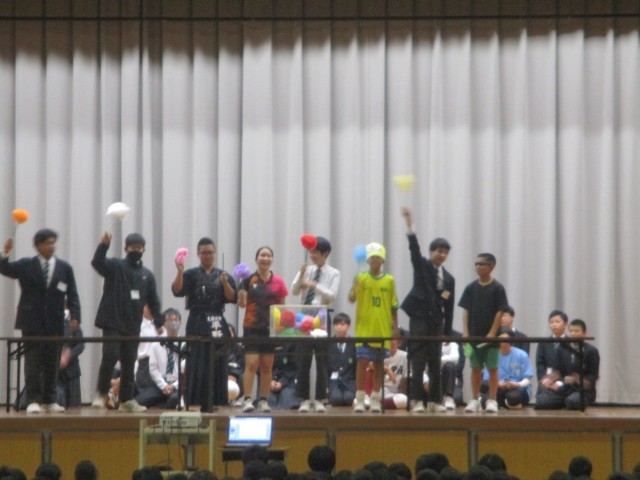 今日は、新入生歓迎セレモニーがありました。行事の紹介と部活動からのメッセージと縦割りの色決めと3本立てでした。部活動からのメッセージは、各部活動それぞれに工夫がありました。また、縦割りの色決めは、宇年ごとに趣向が違って本当におもしろかったです。あれは、生徒会の子たちが考えたのかな?と思いました。